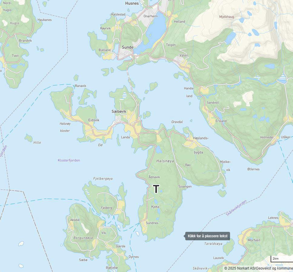 Tomta er omlag i det området som er merka med T. Det er på Fatland, på Halsnøy, i Kvinnherad kommune.