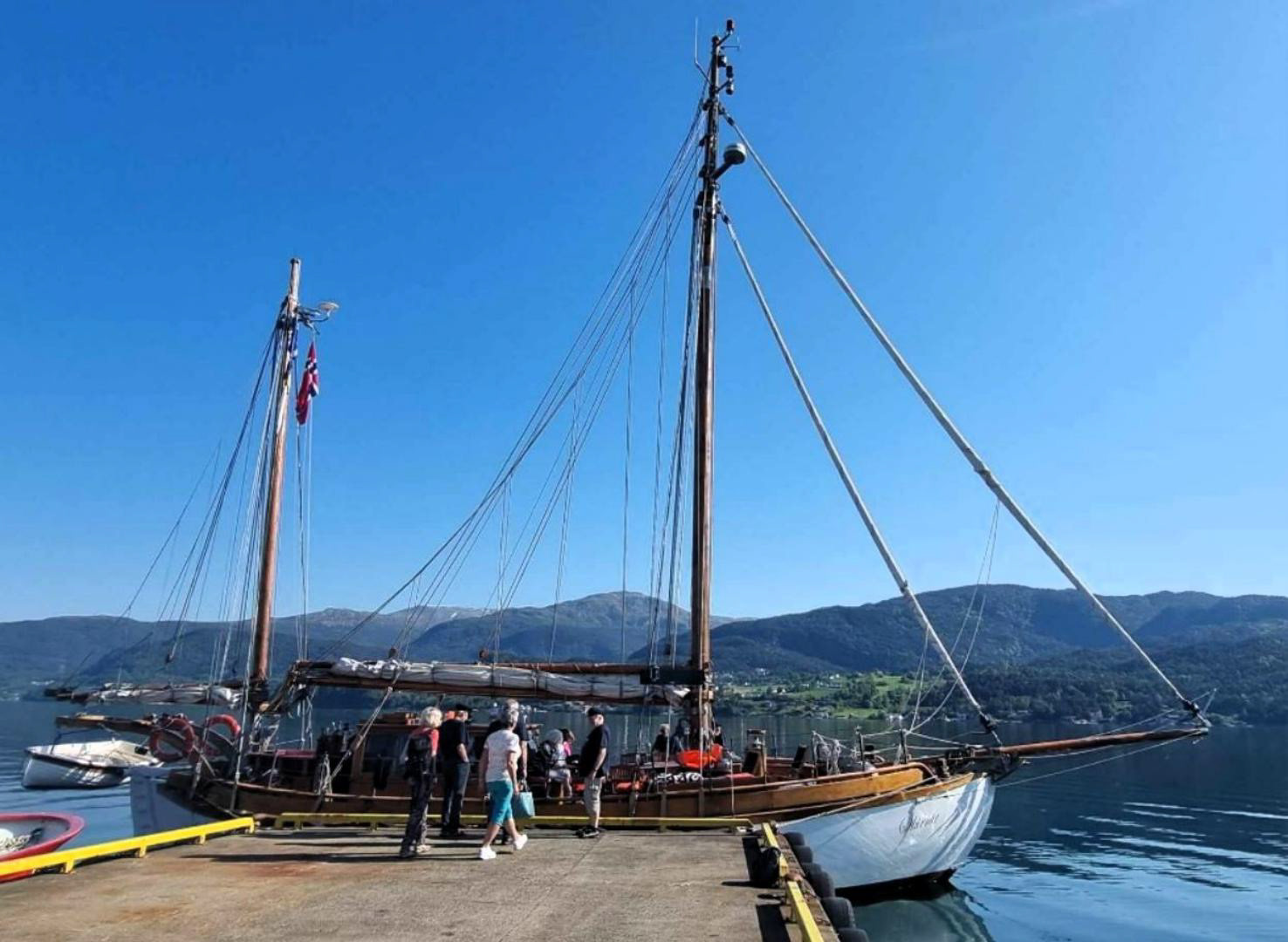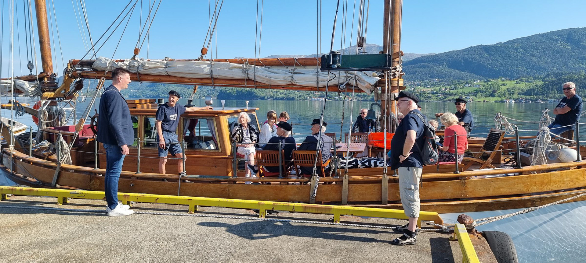 Sunniva og Gerhard Eide stilte opp med den fantastiske skøyta si, med det stolte namnet Skirnir. Til og med ordføraren var på kaien og gav oss nokon formanande ord på veien. Me skulle jo heilt over til nabokommunen, og då gjeld det å kunna oppføra seg.